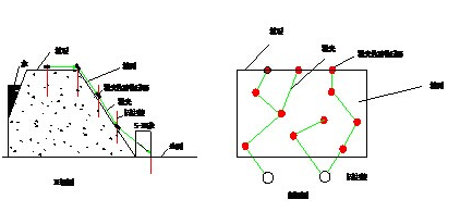 根据坝的长短至少选择2~6个监测剖面。一般在最大坝高处、地基地形地质变化较大处均应布置监测剖面,在每个剖面最上面安装一个激光位移传感器。根据坝的高矮坝在坝坡表面从上到下均匀设置4~6个滑坡监测点,在离坡脚5-10米或更远处设置一个不动点,然后在每个监测点和不动点打固定桩,深度根据坝体进行调整,在每个固定桩之间安装位移传感器。通过固定点和不动点之间的位移变化监测整个坝体的位移。