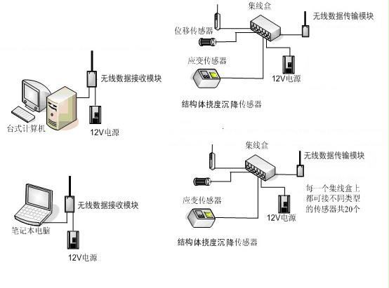 有线连接的系统结构示意图 无线连接的系统结构示意图